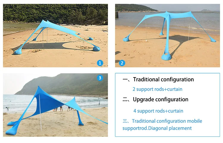 The quality of a beach tents sun shelter largely depends on the materials used and the production process.