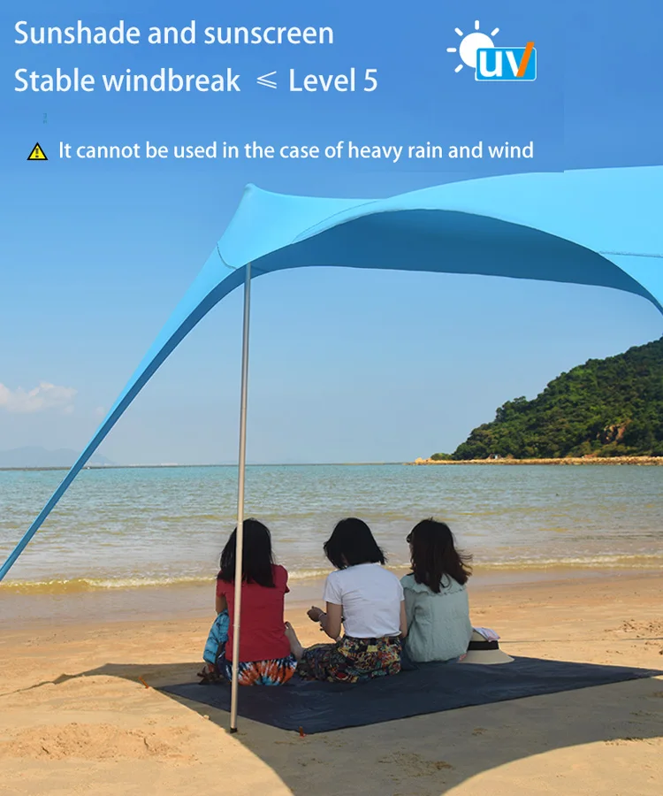 A hybrid between a traditional beach umbrella and a tent, providing flexible shade and easy adjustment to the sun’s angle.