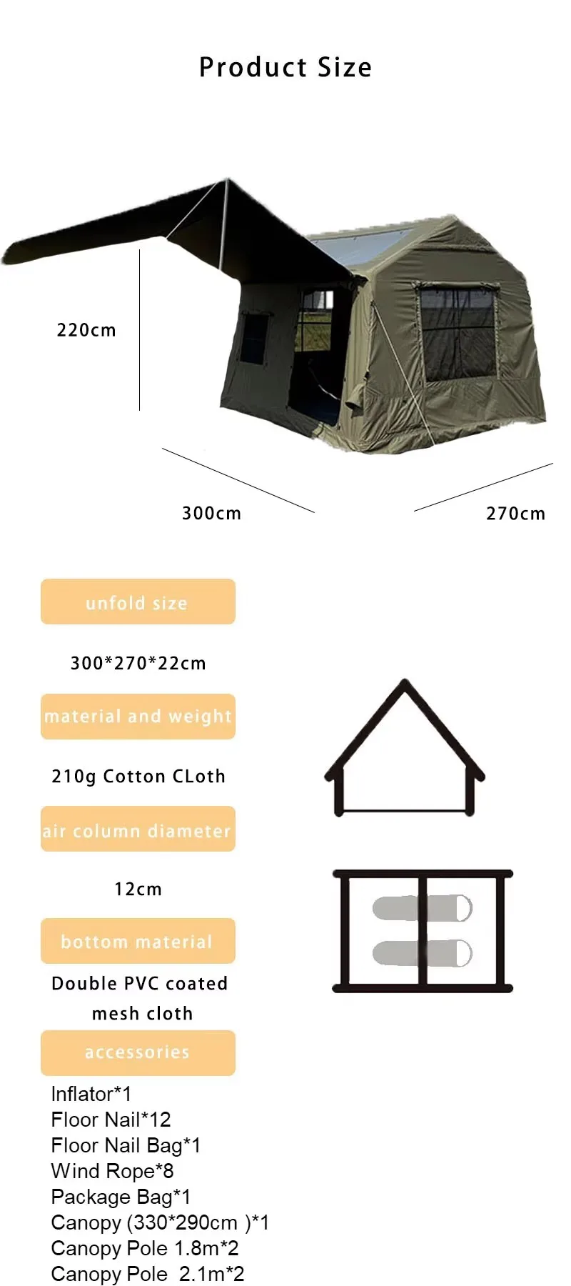 9 Square Meter Cotton Waterproof Inflatable Tent Air Portable for Camping