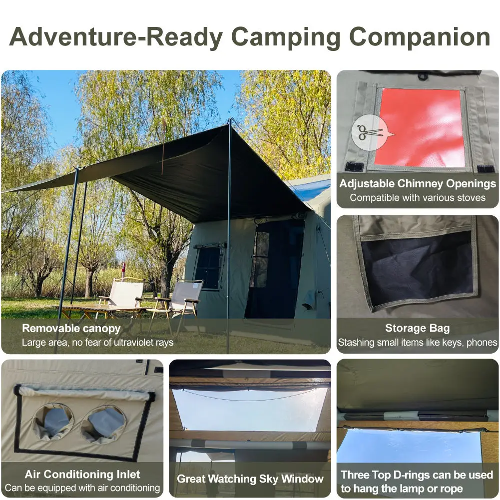Inflatable Canvas Camping Tent Cabin Tent for 6-8 People Outdoor Picnic Air Tent